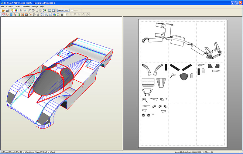 Pepakura unfolding always leaves more work to do than one would expect... The parts are rough and need more work in Illustrator. But when they're sorted out, it's time for a test-build.