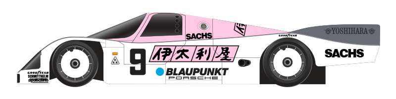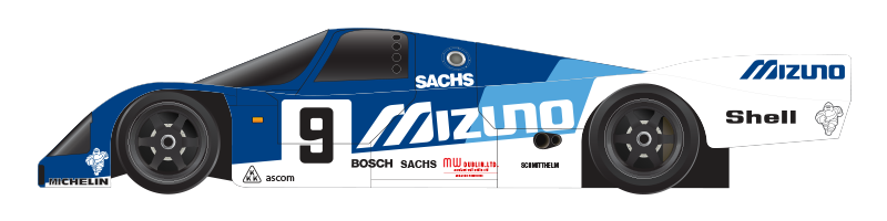 Former Porsche works driver Reinhold Joest fielded large multi-car teams throughout the 962's history at Le Mans. For 1989, Chassis #145 ran the pink and gray of Japanese clothier Italya. The car returned to Le Mans in 1990 with the clean sporting blues of Japanese athletics company Mizuno.