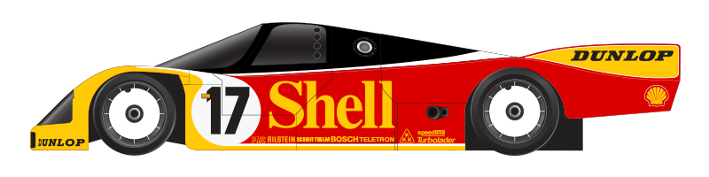 The distinctive asymmetrical 1988 Shell Dunlop livery is one of a long lineage of definitive Porsche designs. 17's chassis #010 was the odds-on favorite to win the 24hrs, but despite a monster of an effort by Hans Stuck, Derek Bell, and Klaus Ludwig from pole, it finished a narrow second just behind the victorious Jaguar.