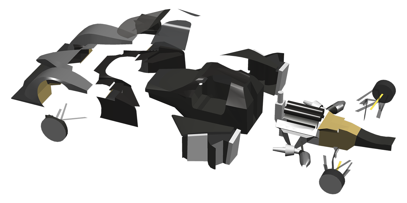 Rough work on the core chassis and tricky front bodywork build. Intent here is to make sure the shaping is right and to find out what improvements need to be made so the surfaces build easily.