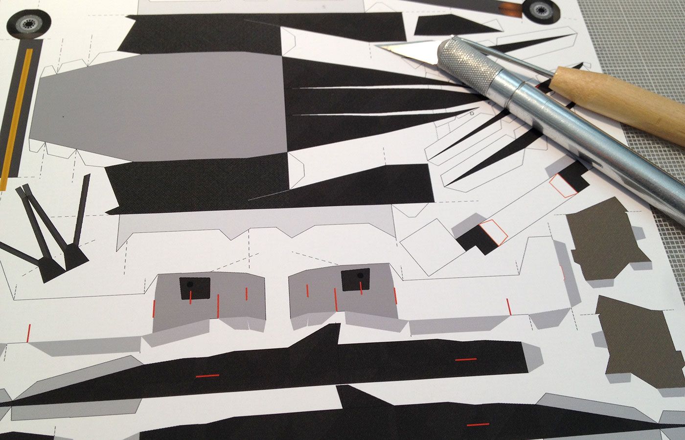 An anxious moment in model design is the first time seeing the work on the desk, in actual three dimensions. Are the proportions right? Do the panels fit well and lend themselves to a precise build? Does the overall presentation "feel" right?